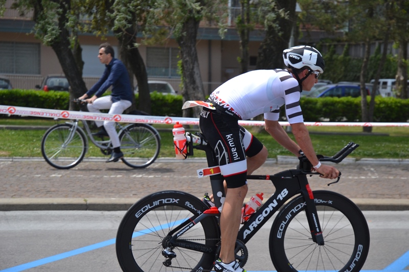 93 kilometrů s převýšením 1000 metrů a úzké silnice plné zatáček dělají z tohoto závodu celkem výzvu. Na jednu stranu jsem rád, že se mi bez problémů podařilo jet ve skupině pěti závodníků, na druhou stranu jsem byl nespokojený s tím, že nám domácí favorit a jeden z nejlepších cyklistů mezi triatlonisty, Giulio Molinari, nadělil osm minut. S tím už se na běhu moc dělat nedá…